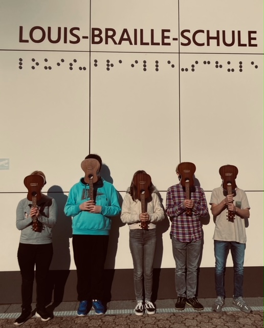 Das wusste auch der Bund für Zupf- und Volksmusik Saar e. V. (BZVS), Dachverband für Mandolinen- und Gitarrenmusik im Saarland, zu dem die Schule seit langer Zeit eine enge Kooperation pflegt. Dessen Präsident Dr. Marcel Wirtz und Ehrenpräsident Thomas Kronenberger hatten die Idee, Ukulelen aus einem abgeschlossenen Projekt auf unbestimmte Zeit der Louis-Braille-Schule Lebach zur Verfügung zu stellen.
