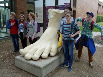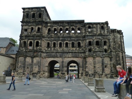 Dort legten wir noch einen Zwischenstopp auf dem Spielplatz ein, bevor wir uns dann das leckere Mittagessen schmecken ließen. Danach marschierten wir gestärkt zur Porta Nigra, wo wir unsere Stadtführerin trafen. Diese führte uns durch die Stadt und zeigte uns die wichtigsten Sehenswürdigkeiten: die Porta Nigra, den Dom, die Basilika und die Kaisertherme.